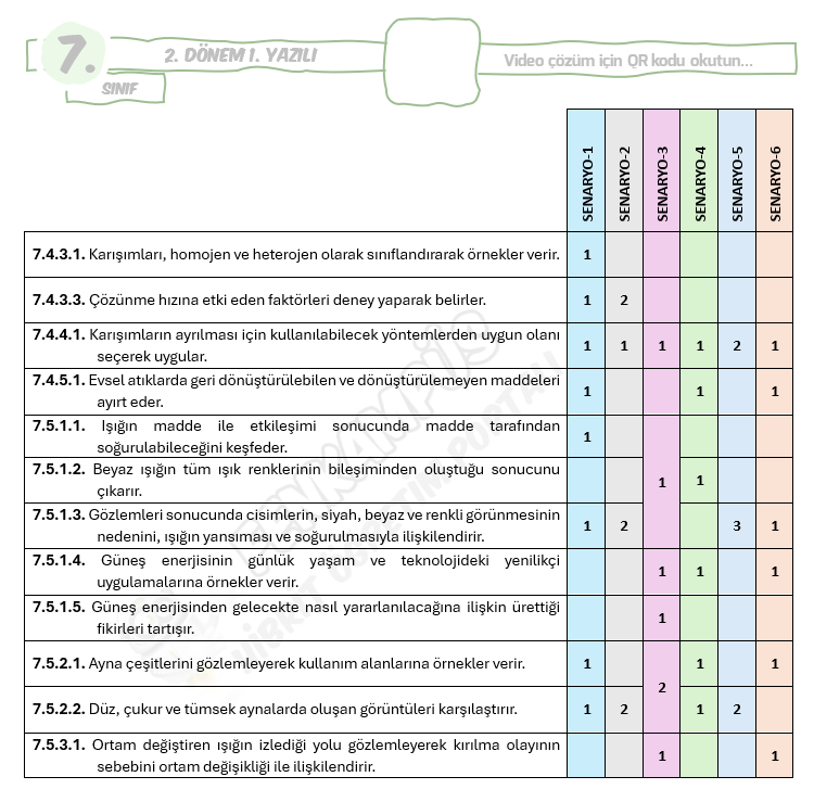 7.Sınıf 2.Dönem 1.Yazılı Çalışması